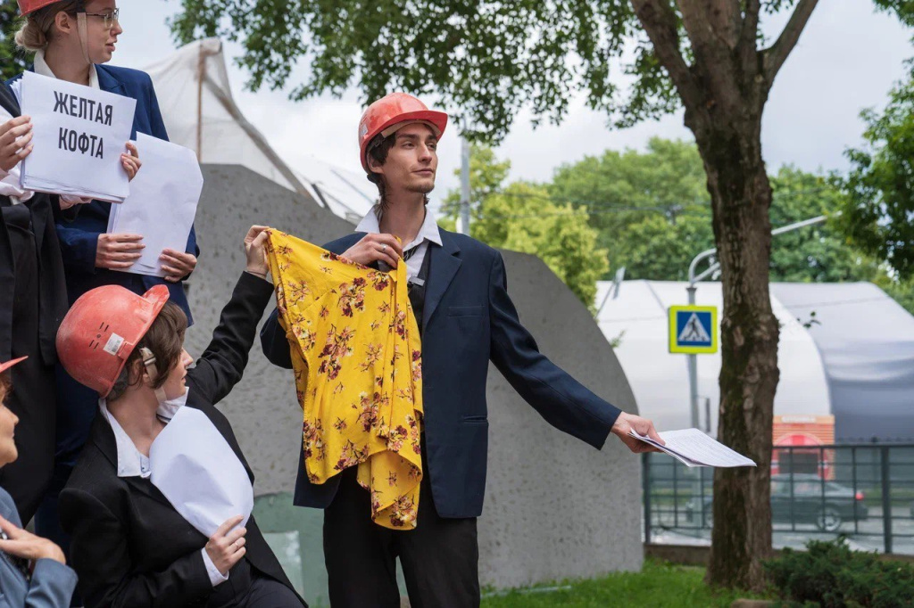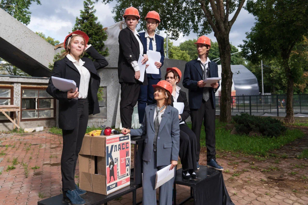 Студийцы Молодежного театра «На Пироговке» прочитали стихи Маяковского у стен клуба завода «Каучук»