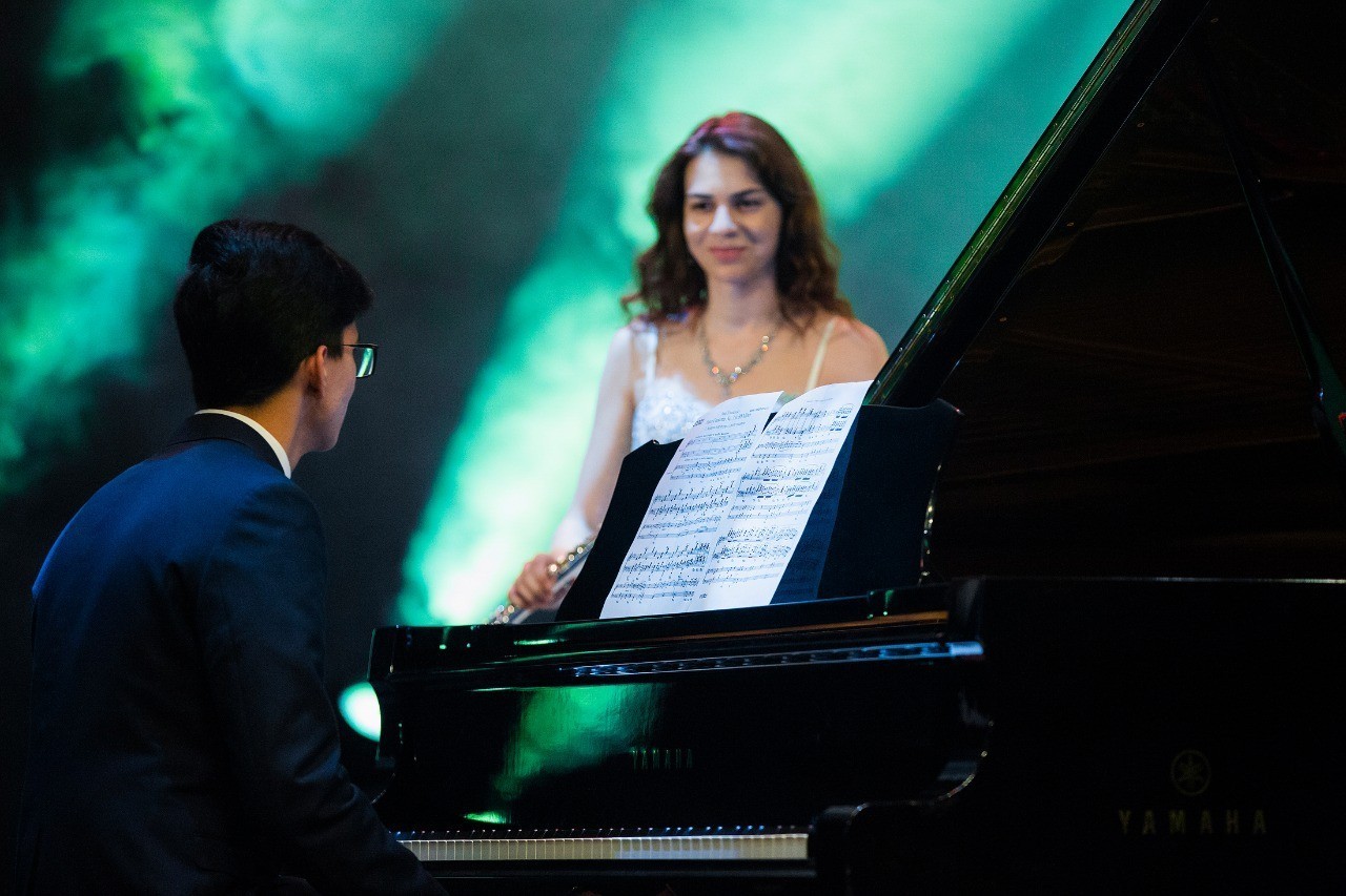Вели концерт Олеся Касьянова, директор культурного центра «New Art» и Антон Родионов, доцент кафедры факультетской и поликлинической терапии.