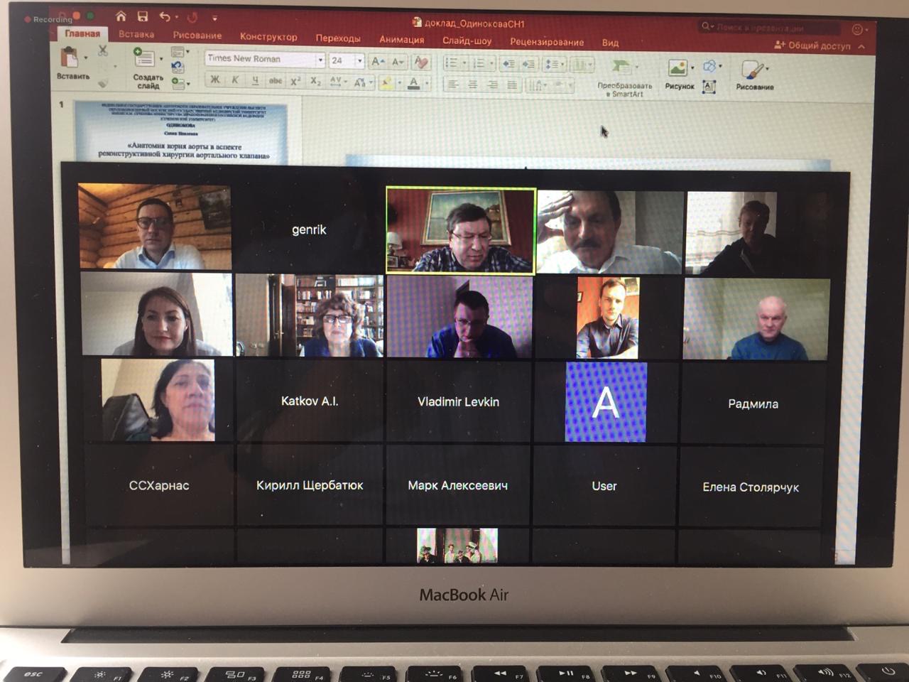 В дистанционном режиме также были рассмотрены направления научных коллабораций кардиохирургов и анатомов в области изучения конституциональной и вариантной анатомии сердечно-сосудистой системы, биосопромата структур сердца и крупных кровеносных сосудов в прикладном аспекте хирургии. Вдохновляет то, что научное мероприятие совпало с годовщиной исторического события – встречи союзных армий на реке Эльбе, которое свершилось накануне Победы в Великой Отечественной войне 75 лет назад, 25 апреля 1945 года. Сегодня, мы все на фронте борьбы с пандемией COVID-19. Пандемия не остановит движение науки. Мы победим!
