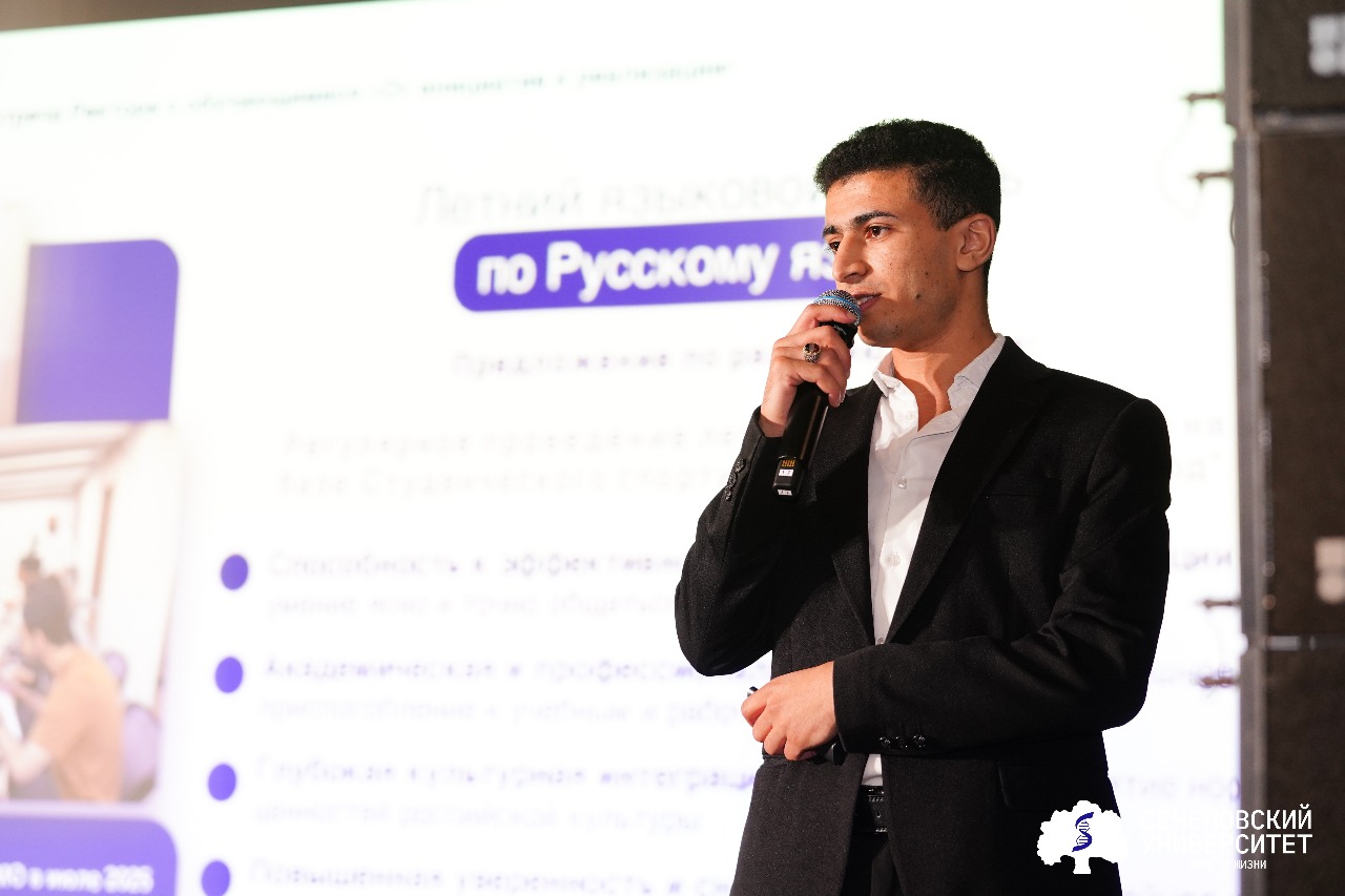 Председатель Совета иностранных обучающихся Сайф Ал-Шарафи на блестящем русском рассказал о векторах развития сообщества иностранных студентов. Этим летом Институт международного образования Первого МГМУ успешно провел пилотный летний языковой лагерь — «не просто курсы и интерактив, а фундамент для полноценного, успешного и комфортного вхождения в медицинскую профессию и жизнь в русскоязычной среде». На следующий год у института большие планы, которые ректор приветствовал: сделать лагерь ежегодным, проводить его в санатории «Звенигород» и добавить зимние смены.