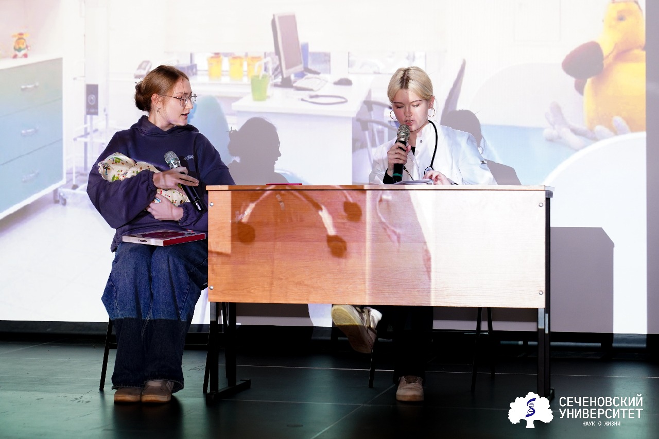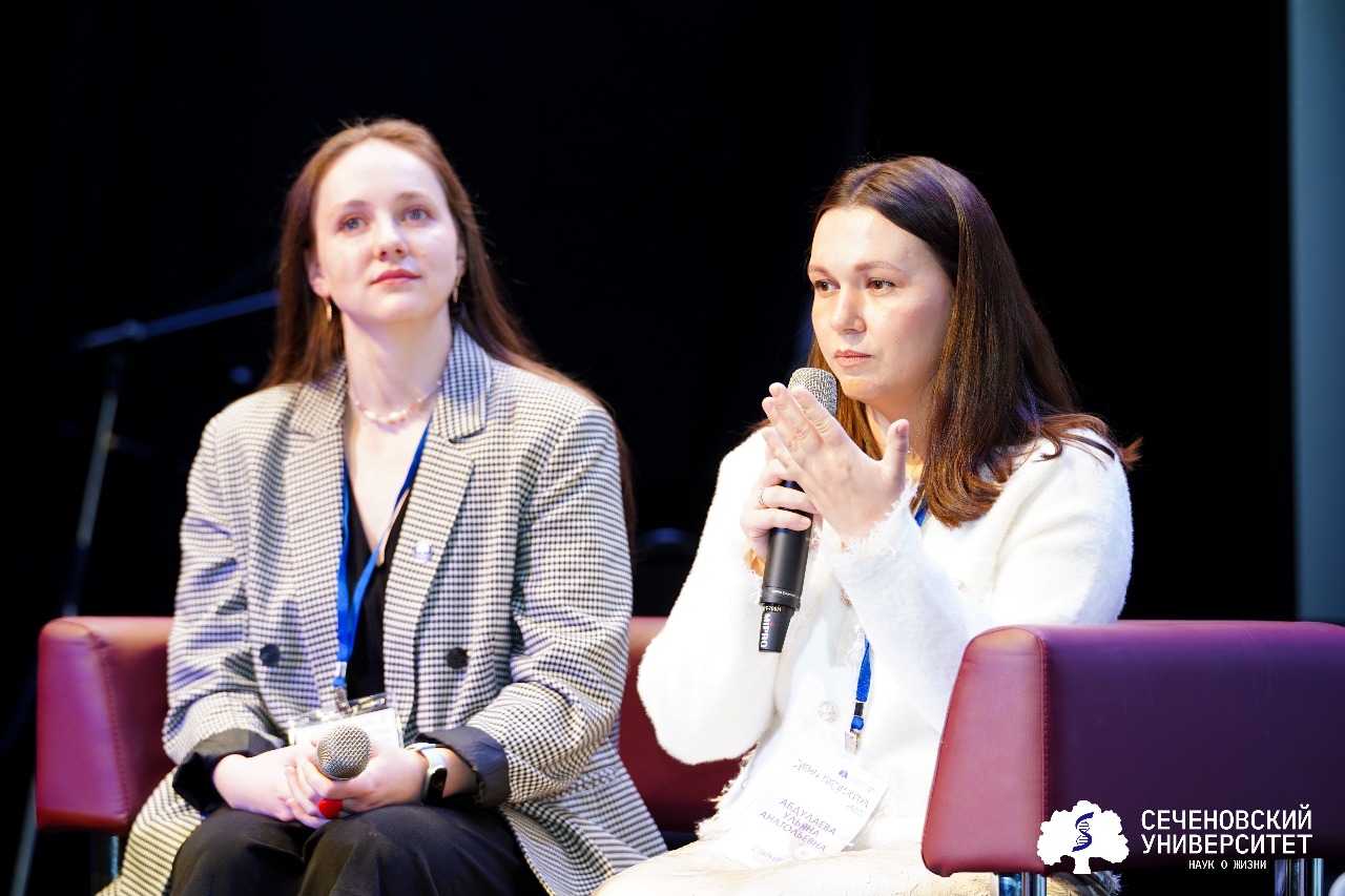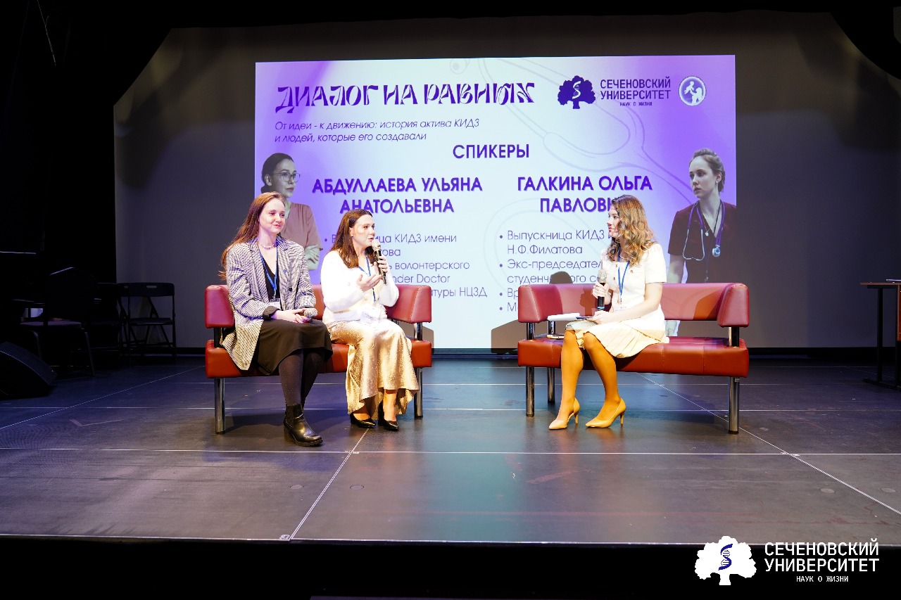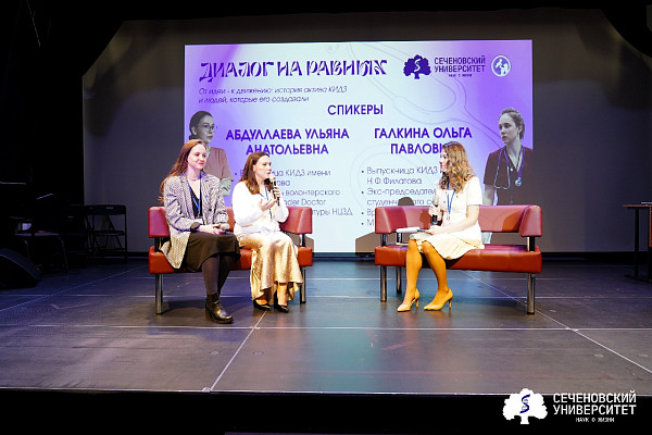 Также на одной сцене выступили выпускницы Сеченовского Университета: старший лаборант кафедры педиатрии и детской ревматологии Первого МГМУ Ольга Галкина и врач-педиатр Ульяна Абдуллаева. Ольга рассказала о первых шагах в профессии, о сочетании роли врача и молодой мамы, о том, как материнство меняет взгляд на работу с детьми.
