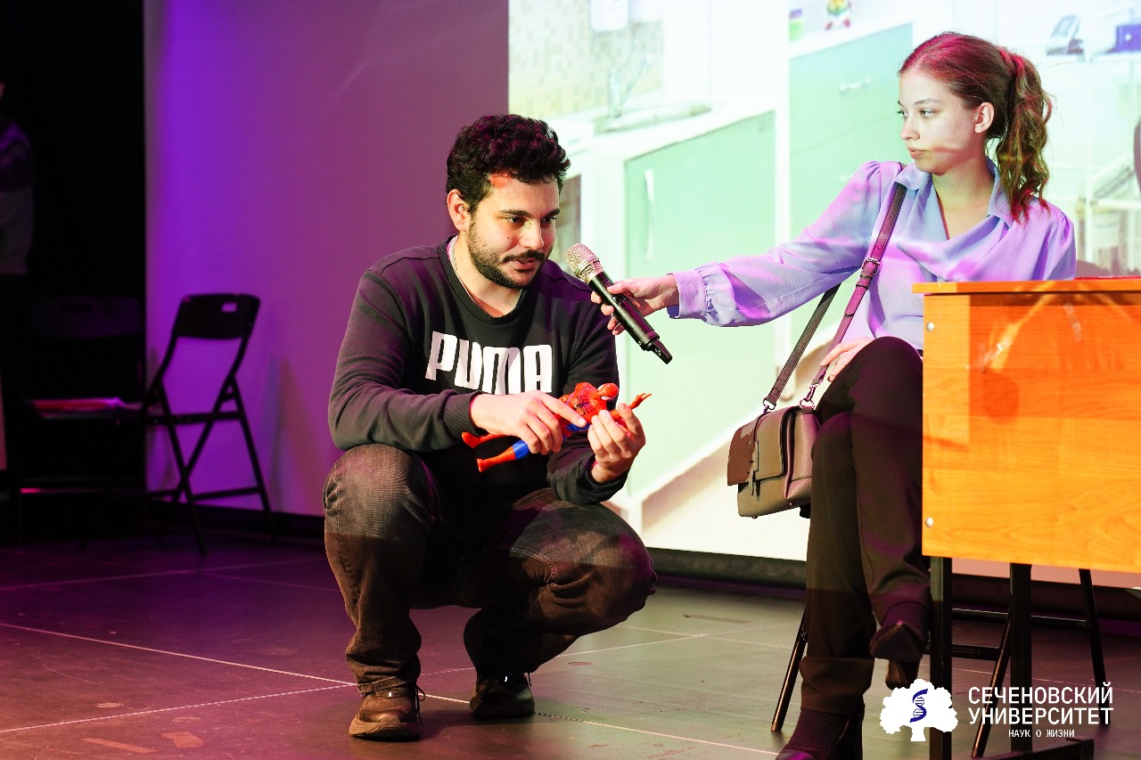 «Я сегодня с ребятами показала юмористическую зарисовку, где сыграла роль врача. Мы вместе разрабатывали сценарий, обсуждали реквизит и распределяли роли. И вот, наконец, настал момент нашего выступления — было очень волнительно и интересно! —сказала студентка 1-го курса Сеченовского УниверситетаСофия Бут. — А еще я сегодня обошла все интерактивные станции — они очень увлекательные, и подарки дали замечательные».