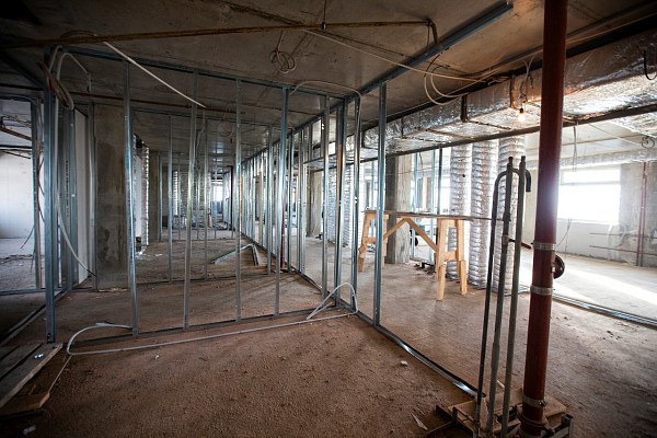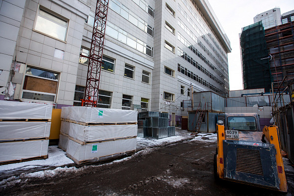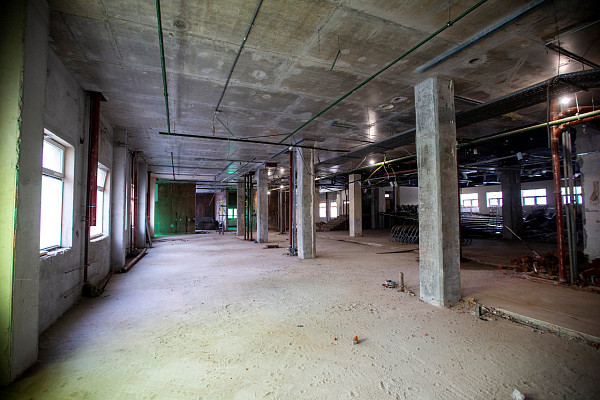 В настоящее время в корпусе ведутся общестроительные работы, а также проводится монтаж внутренних инженерных систем: электроснабжения, водоснабжения и канализации, отопления, вентиляции, дымоудаления.