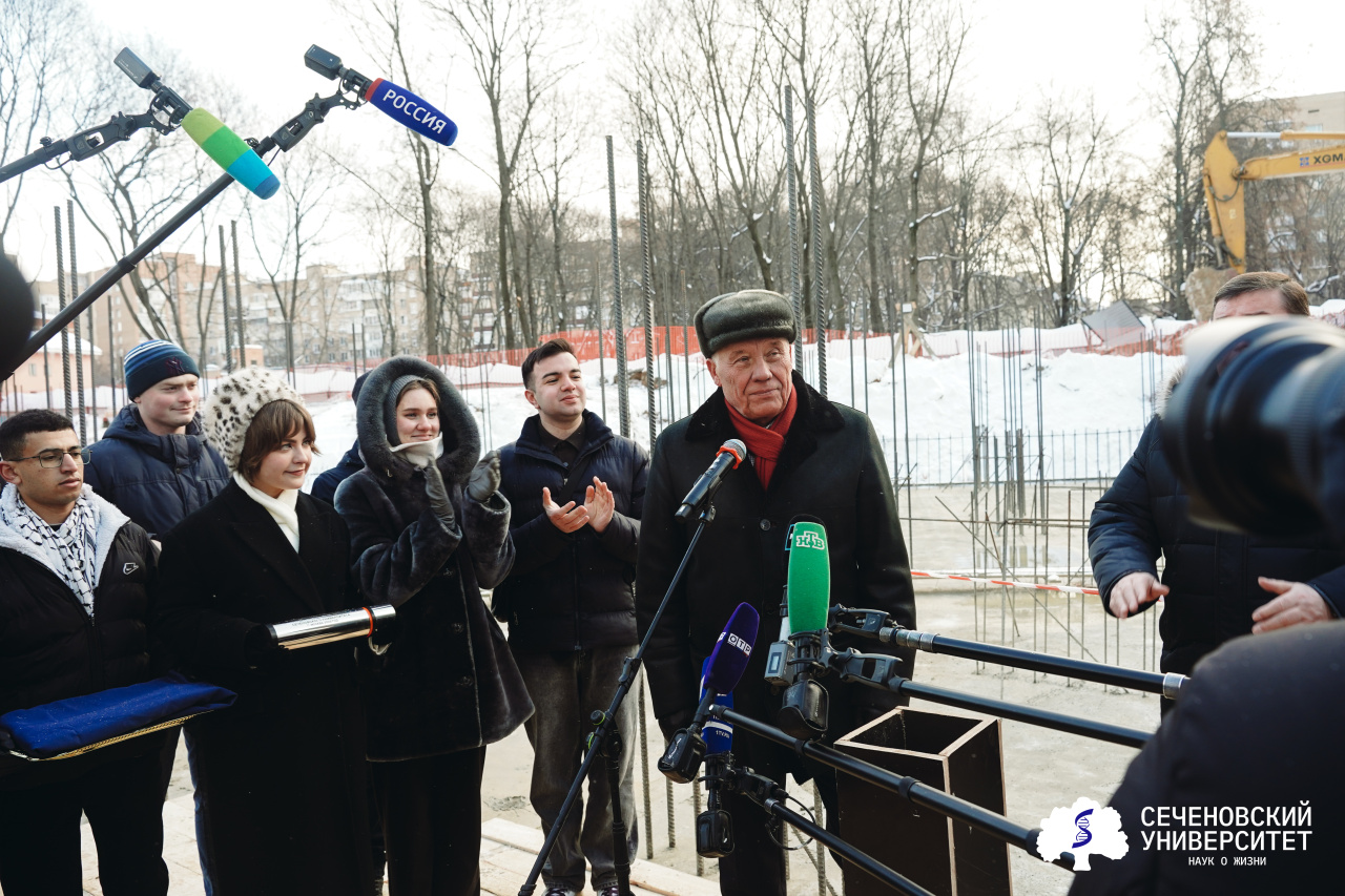 «Для нас это историческое событие. Мы начинаем строительство нового общежития для студентов. Через два года здесь будет прекрасный кампус со всеми условиями: двухместные комнаты с кухней. Построив это общежитие, мы закроем очередь из студентов на заселение. Потому что сейчас наших общежитий на всех не хватает, и мы арендуем общежития у других вузов. И конечно, в собственном корпусе проживание будет для вас дешевле и комфортнее», — сказал ректор Сеченовского Университета Петр Витальевич Глыбочко.