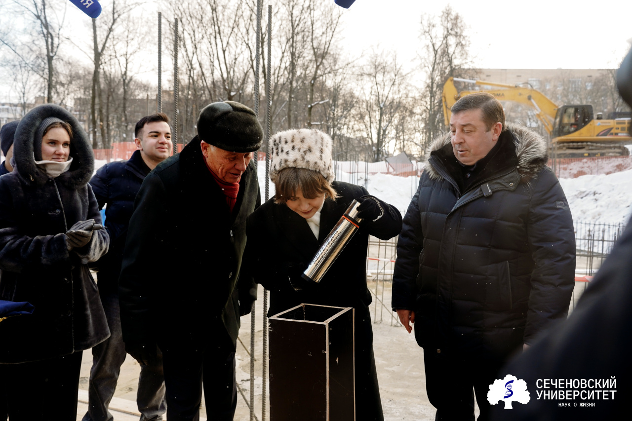 Ректор, студенты и ветераны Сеченовского Университета собрались на строительной площадке, чтобы заложить в фундамент нового студенческого дома капсулу времени с посланиями. В каждом послании отражено особое отношение к своей профессии как к служению, вдохновение и любовь. Хочется, чтобы в будущем служение людям, вдохновение от работы и любовь к жизни стали главными ценностями и способствовали научному прогрессу.