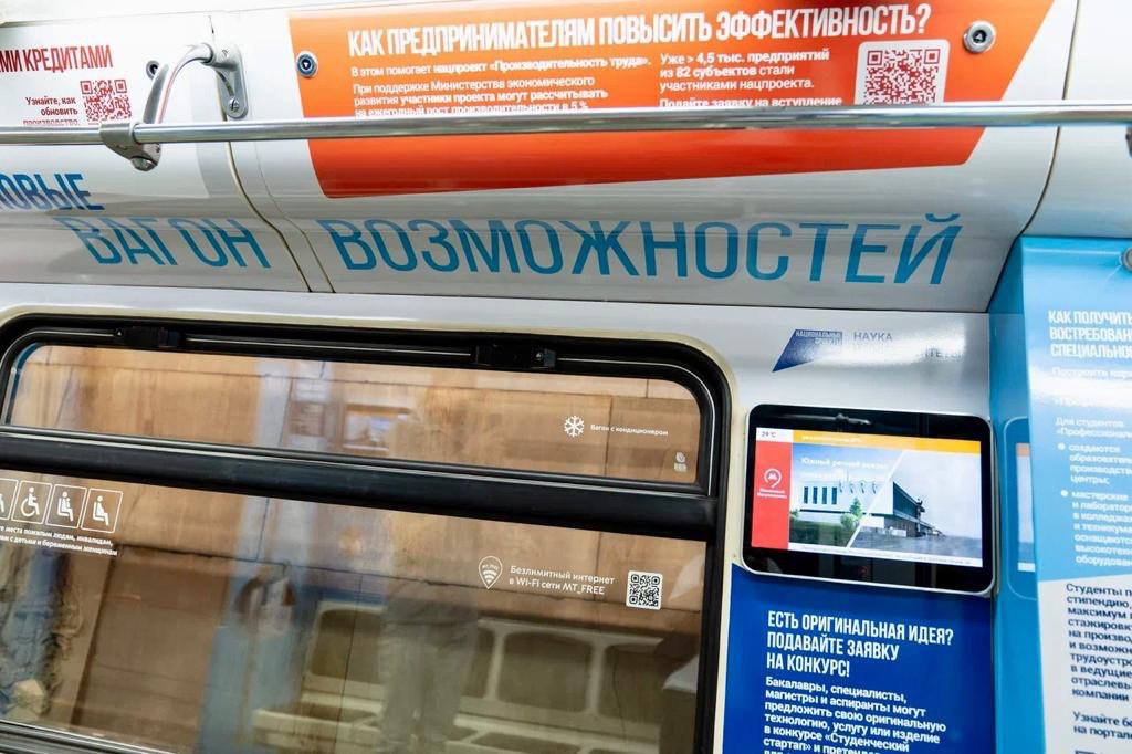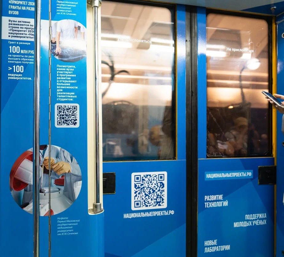 АНО «Национальные приоритеты» и Московский метрополитен запустили состав, посвященный национальным проектам России. Всего в тематическом составе представлено 14 ключевых направлений развития страны.