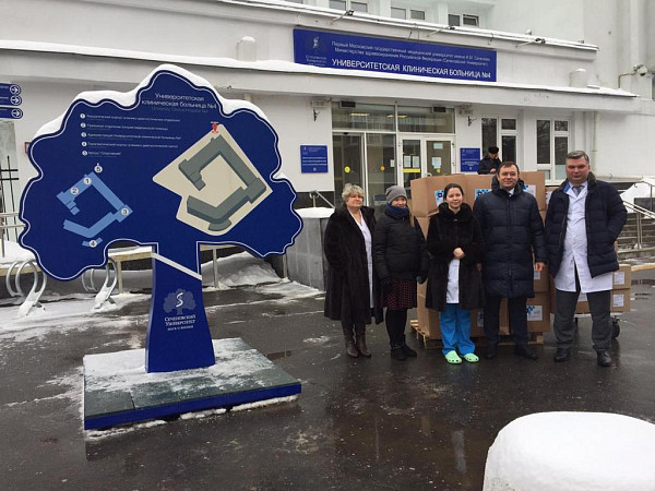Слово «груз» вполне уместно: для того чтобы доставить весь объем комплектов, понадобилась вместительная «Газель». Этот знак признательности медикам был выражен также словами в торжественной обстановке при передаче благотворительной помощи. На ней присутствовали региональный координатор движения «Волонтеры-медики» в Москве Дарья Белимова, проректор по общественным связям и воспитательной работе Сеченовского Университета Виктор Лойко и проректор по клинической работе и дополнительному профессиональному образованию Виктор Фомин.