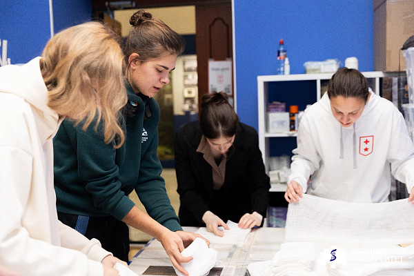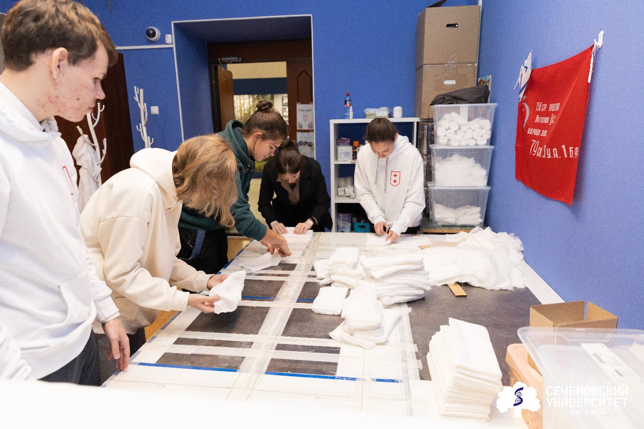 На базе Троян-центра действует благотворительная мастерская «Сеченовский Университет в помощь фронту» — ее активисты провели для всех желающих мастер-класс по изготовлению хирургических салфеток. В дальнейшем такие салфетки стерилизуют в университетском Клиническом центре наук о здоровье и передают боевым подразделениям на передовую. Вместе с ними на фронт отправляют индивидуальные перевязочные средства, маскировочные сети и тактические нашлемники — тоже дело рук волонтеров, студентов и сотрудников Первого МГМУ.