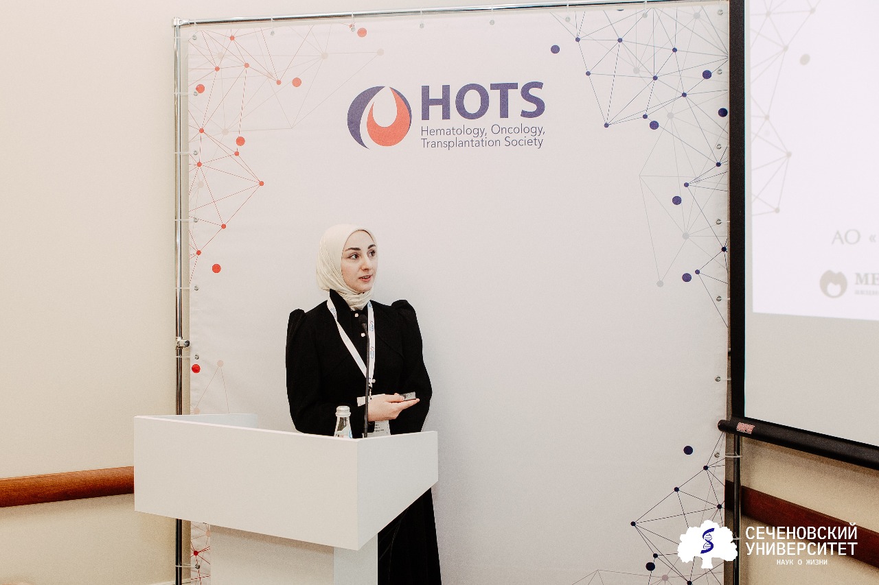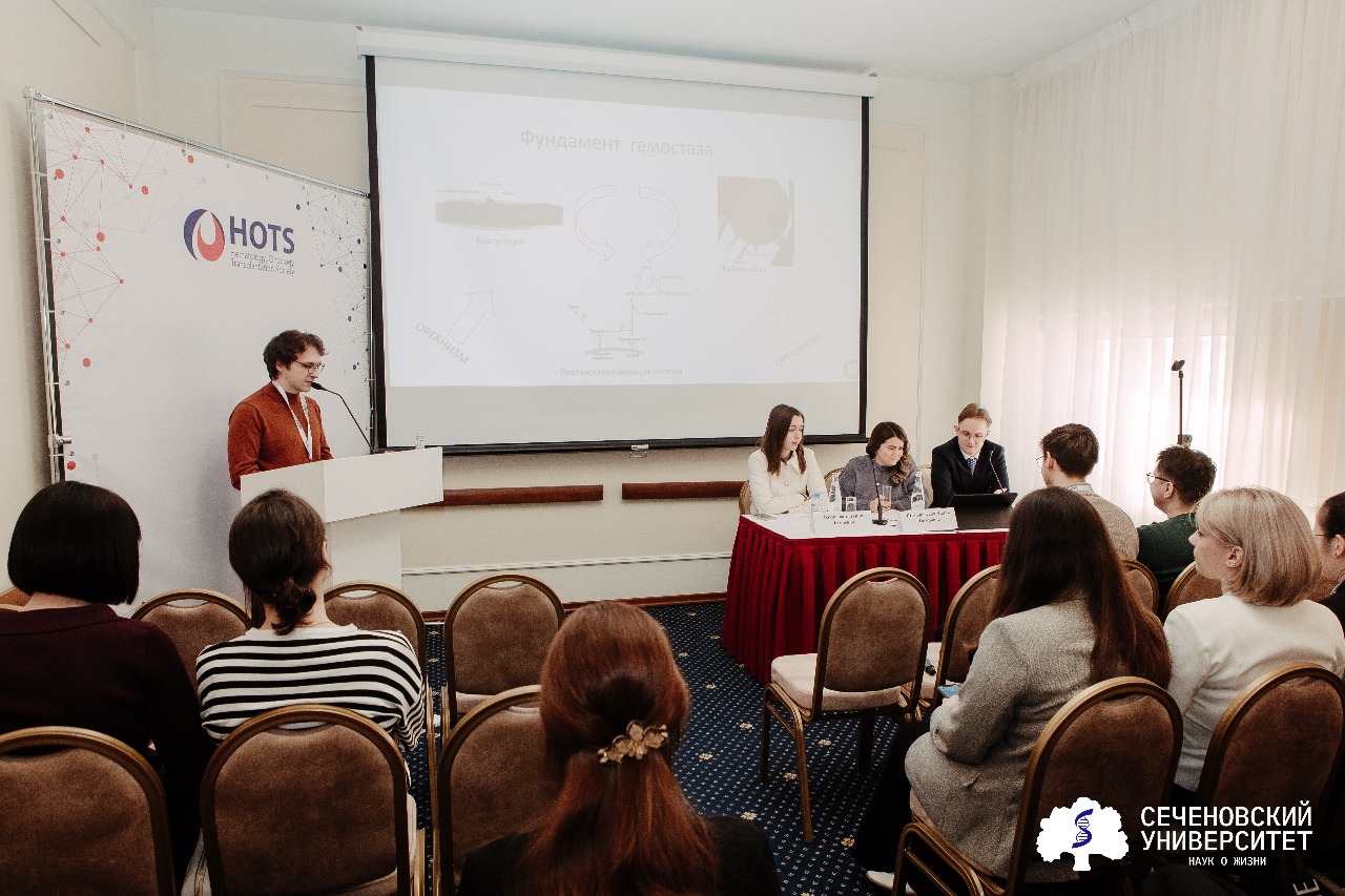 Светлана Гейдарова, студентка 6-го курса кафедры гематологии Института клинической медицины им. Н. В. Склифосовского Сеченовского Университета подробно разобрала структуру и механизмы системы гемостаза. Она показала процесс формирования тромбов и рассказала о нарушениях гемостаза, таких как патологии тромбоцитов и сосудистой стенки, дисфункции и дефициты факторов свертывания.