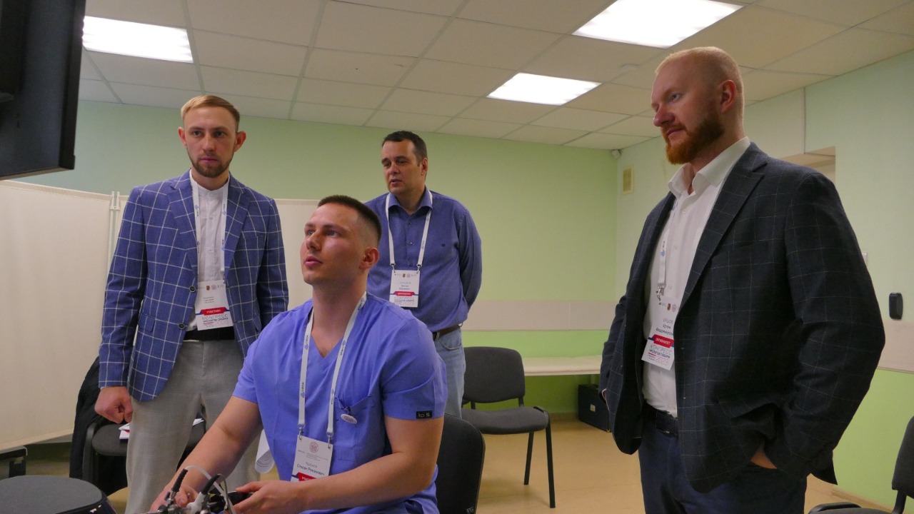 Олимпиада состояла из творческого, теоретического и практического конкурсов. Ребятам предстояло продемонстрировать знания лапароскопической уретеролитотомии, пластики нижней трети мочеточника по Боари, выполнение ТУР мочевого пузыря на стимуляторе, катетеризацию мочевого пузыря и вязание хирургических узлов.