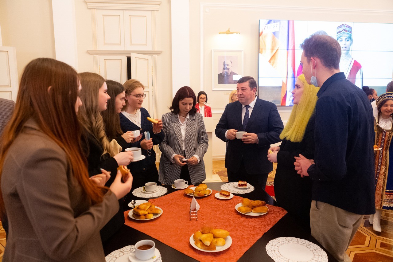 Ключевым моментом праздника стал «Диалог на равных» с ректором Петром Глыбочко. За чашкой ароматного чая студенты, действительно, общались на равных с ректором, открыто задавали интересующие вопросы, касающиеся учебы, научной деятельности, стажировки и получали исчерпывающие ответы.