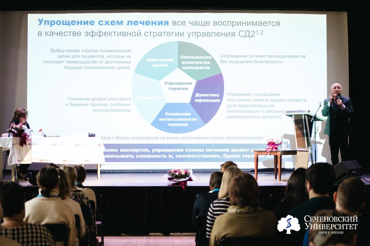 Сахарный диабет по-прежнему остается одной из ведущих медико-социальных проблем, как в России, так и в мире. В нашей стране только зарегистрировано пять миллионов больных сахарным диабетом второго типа. В рамках секции «Современная диабетология на страже здоровья и активного долголетия» обсуждались возможности персонифицированной терапии сахарного диабета 2-го типа с позиции органопротекции. «Правильный образ жизни – это основа активного долголетия, – подчеркнул Ашот Мкртумян, профессор, заведующий кафедрой эндокринологии НОИ клинической медицины имени Н. А. Семашко Российского университета медицины МЗ РФ, руководитель научного отдела эндокринных и метаболических нарушений МКНЦ имени А. С. Логинова ДЗМ, – и сегодня это особенно важно для тех, кто уже заболел диабетом». Спикеры отмечали важность федерального проекта «Борьба с сахарным диабетом» и проекта «Активное долголетие». Они доказали свою эффективность в профилактике и раннем выявлении сахарного диабета, помогают пациентам улучшать качество жизни и увеличивать ее продолжительность.