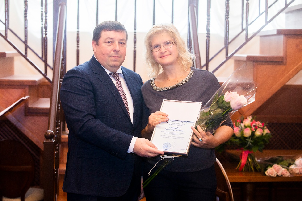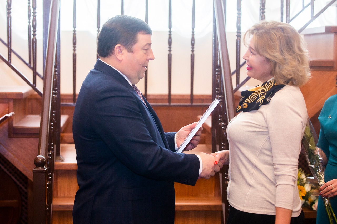 Праздничное торжество продолжилось вручением наград: нагрудные знаки «Отличник здравоохранения», благодарности министра здравоохранения, почетные грамоты Сеченовского Университета, благодарности ректора.
