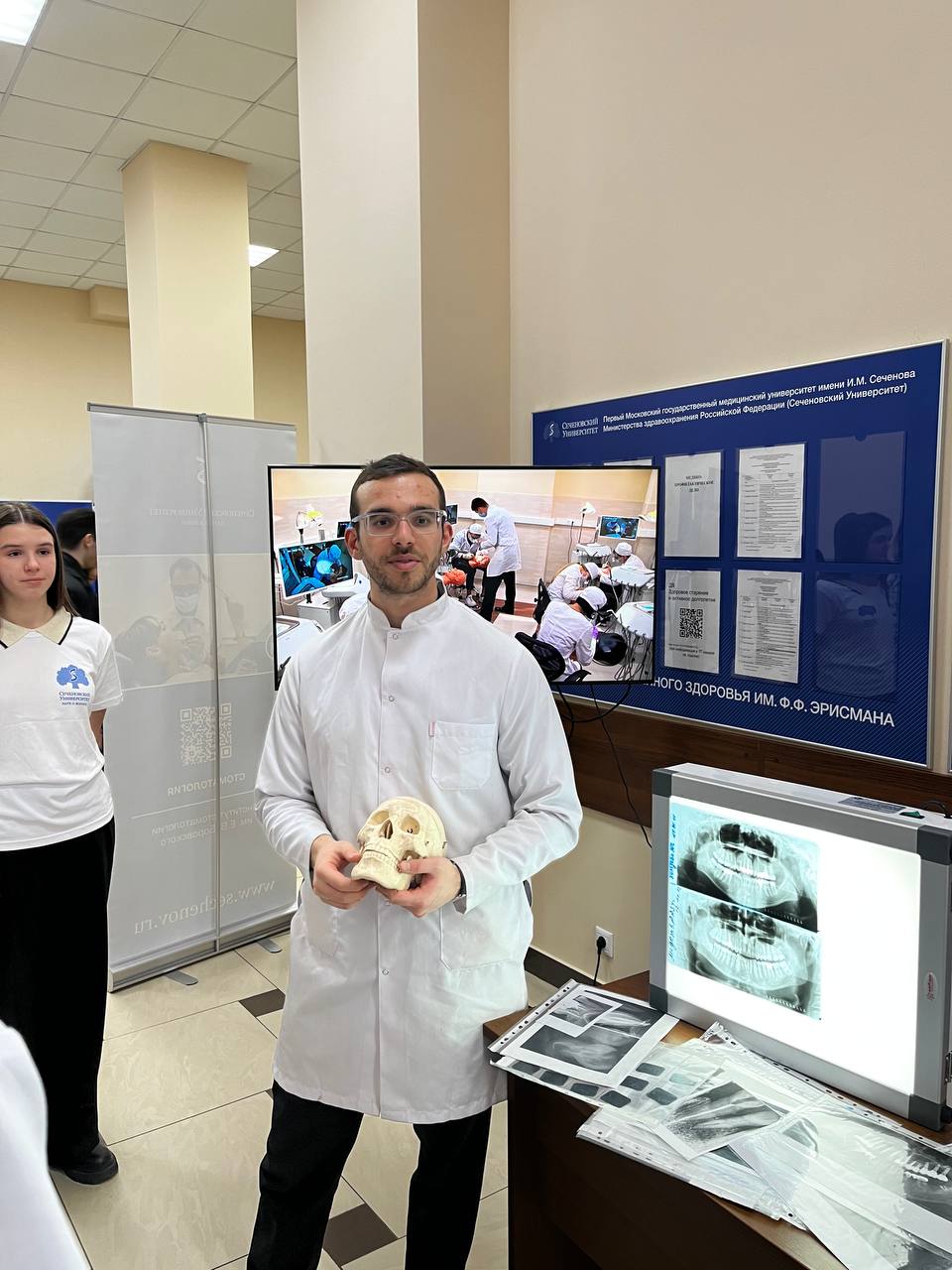 На площадке Института общественного здоровья имени Ф.Ф. Эрисмана были организованы мастер-классы для учащихся медицинских классов. Аспиранты и обучающиеся Школы мастерства и студенческого научного кружка Института стоматологии им. Е.В. Боровского провели 2 мастер-класса: «Рентгеноанатомия челюстно-лицевой области» и «Техника наложения швов». Будущие врачи узнали, какие виды рентгенограмм применяются в стоматологической практике, научились находить анатомические структуры и патологические образования на ортопантомогорамме. Многие смогли попробовать себя в роли стоматолога-хирурга и попрактиковаться в наложении швов под руководством тьюторов.