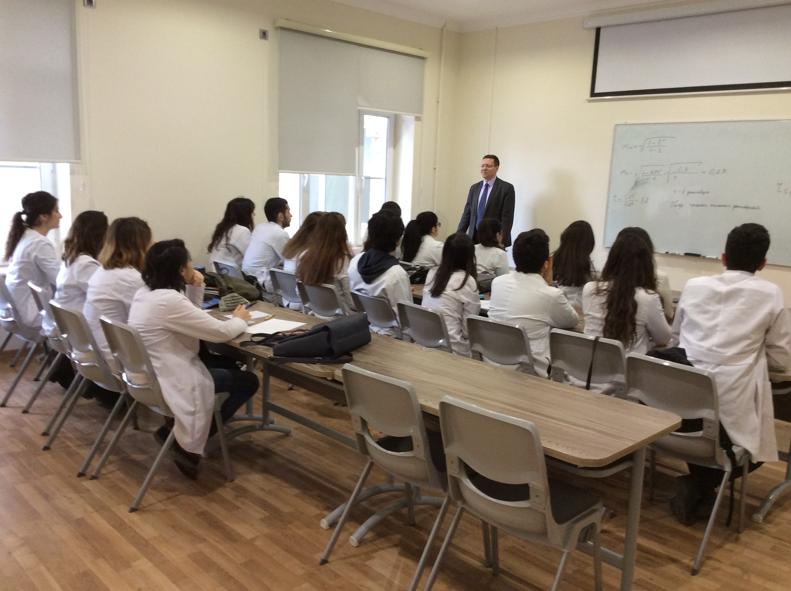 В феврале 2018 года сотрудники кафедры общественного здоровья и здравоохранения имени Н.А. Семашко – профессор О.А. Манерова и доцент В.В. Козлов провели цикл занятий в Бакинском филиале Сеченовского Университета. Это первый опыт работы преподавателей кафедры со студентами Бакинского филиала. Преподаватели отметили высокий уровень мотивации и организованности студентов, их научный потенциал, интерес к изучению проблем здоровья и факторов риска заболеваемости населения Республики, а также творческую и доброжелательную атмосферу на лекциях и практических занятиях. Следующий выездной цикл по дисциплине «Общественное здоровье и здравоохранение» состоится осенью 2018 года.