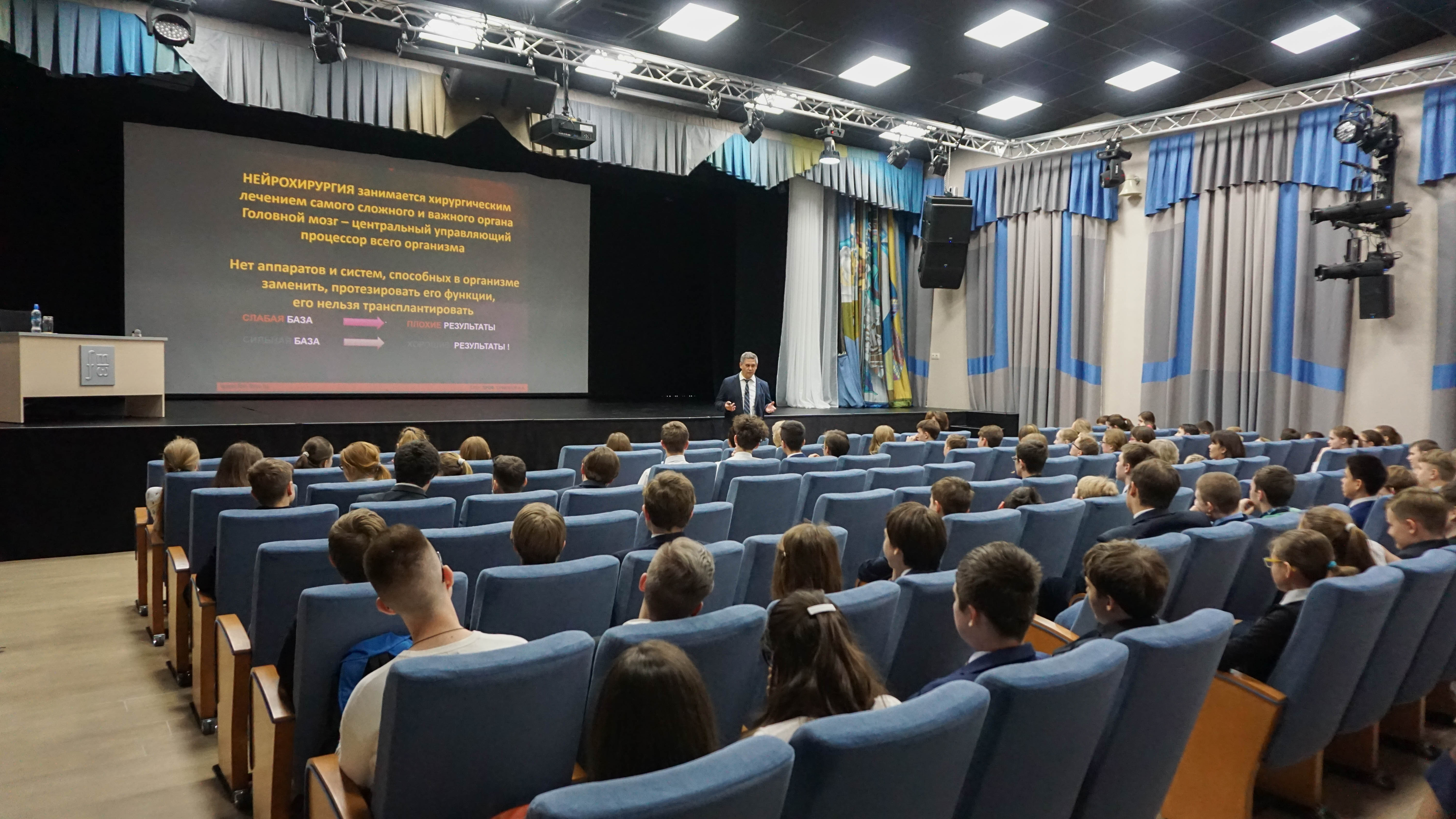 «Я восхищен теми условиями, которые созданы в школе для культивирования и роста юных гениев. Современная нейрохирургия – это уникальное сочетание биологических, медицинских, цифровых, навигационных, аддитивных, визуализационных технологий. Скажу, что у ФМШ и ФЦН очень много общего. Очень высокий входной конкурс, знаю, что в школе по 18-20 человек на место. Чрезвычайная увлеченность своим любимым делом. Стремление не только на лидерство – интеллектуальное и технологическое, но и на постоянный рост. Нейрохирургия - это отрасль, где выпускники физико-математической школы найдут себе достойное место. Мы будет рады, если после получения базового медицинского образования они придут к нам на кафедру», - выразил свою точку зрения Альберт Суфианов.