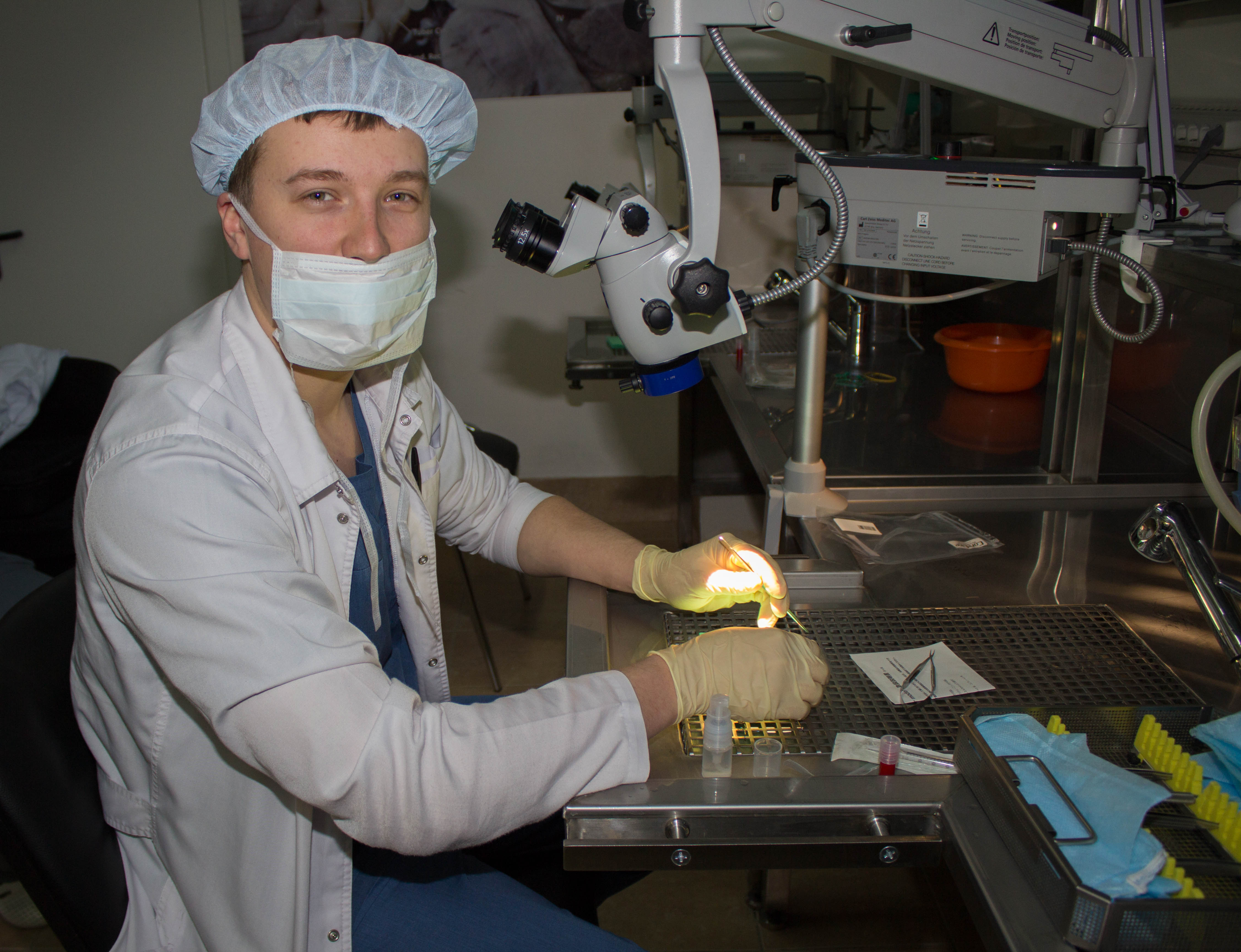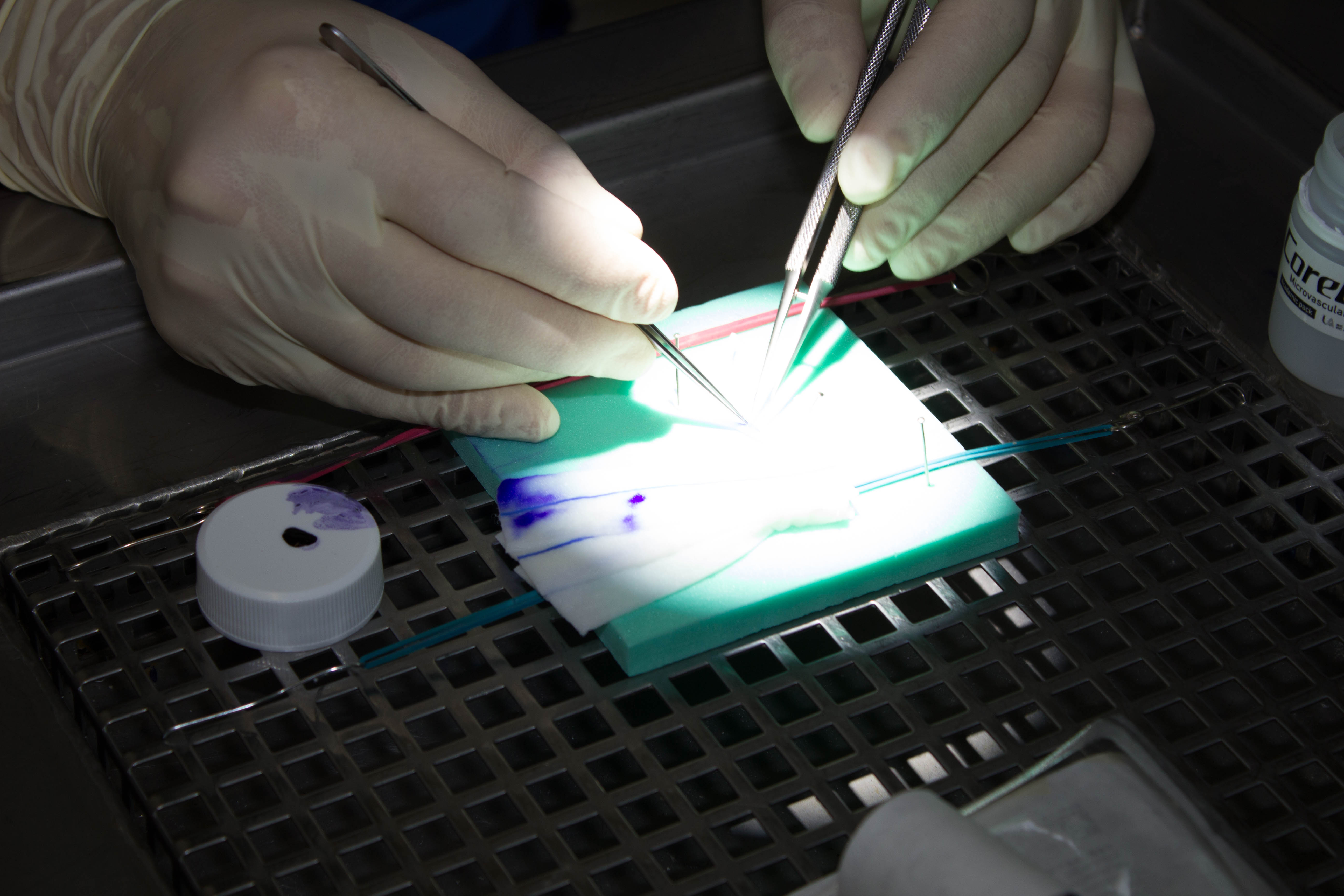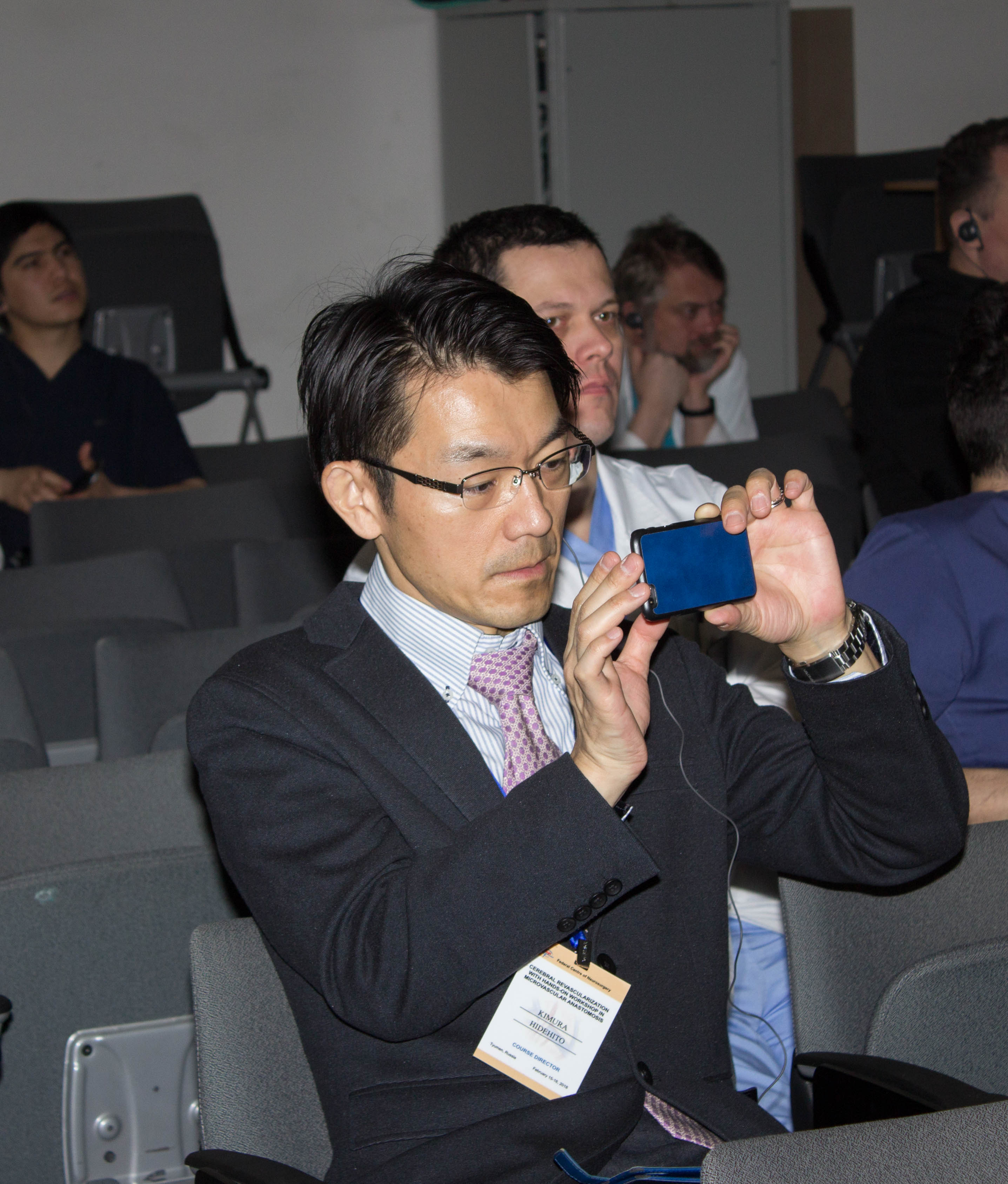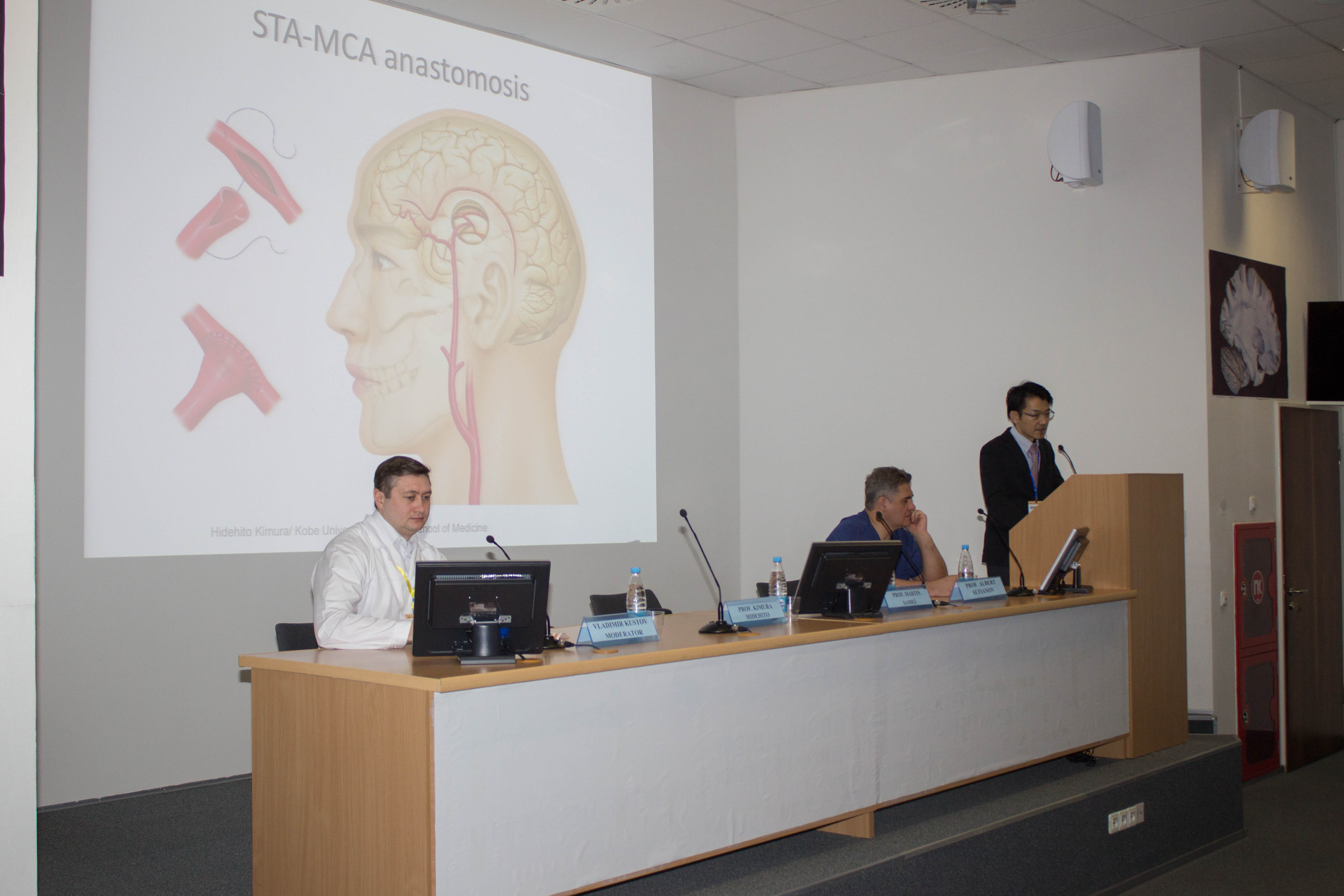 В первый день конференции профессор Кимура Хидехито провел лекцию на тему «Базовая техника микроанастомозов в сосудистой микрохирургии», а Мартин Самеш, гость из Чехии, рассказал об экстра-интракраниальном микроанастомозе (ЭИКМА). Затем прошел мастер-класс, на котором участники смогли отработать технику наложения швов на препаратах – куриных крыльях и бедрах.